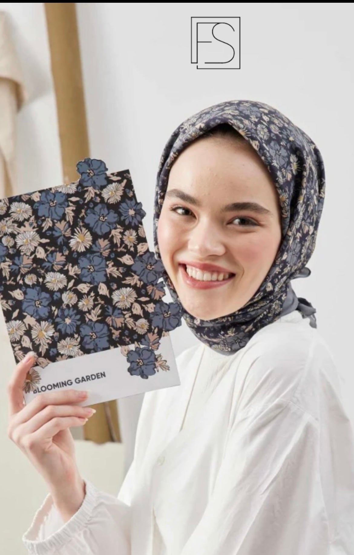 Blooming Garden Patterned Cotton Silk Scarf Navy Blue